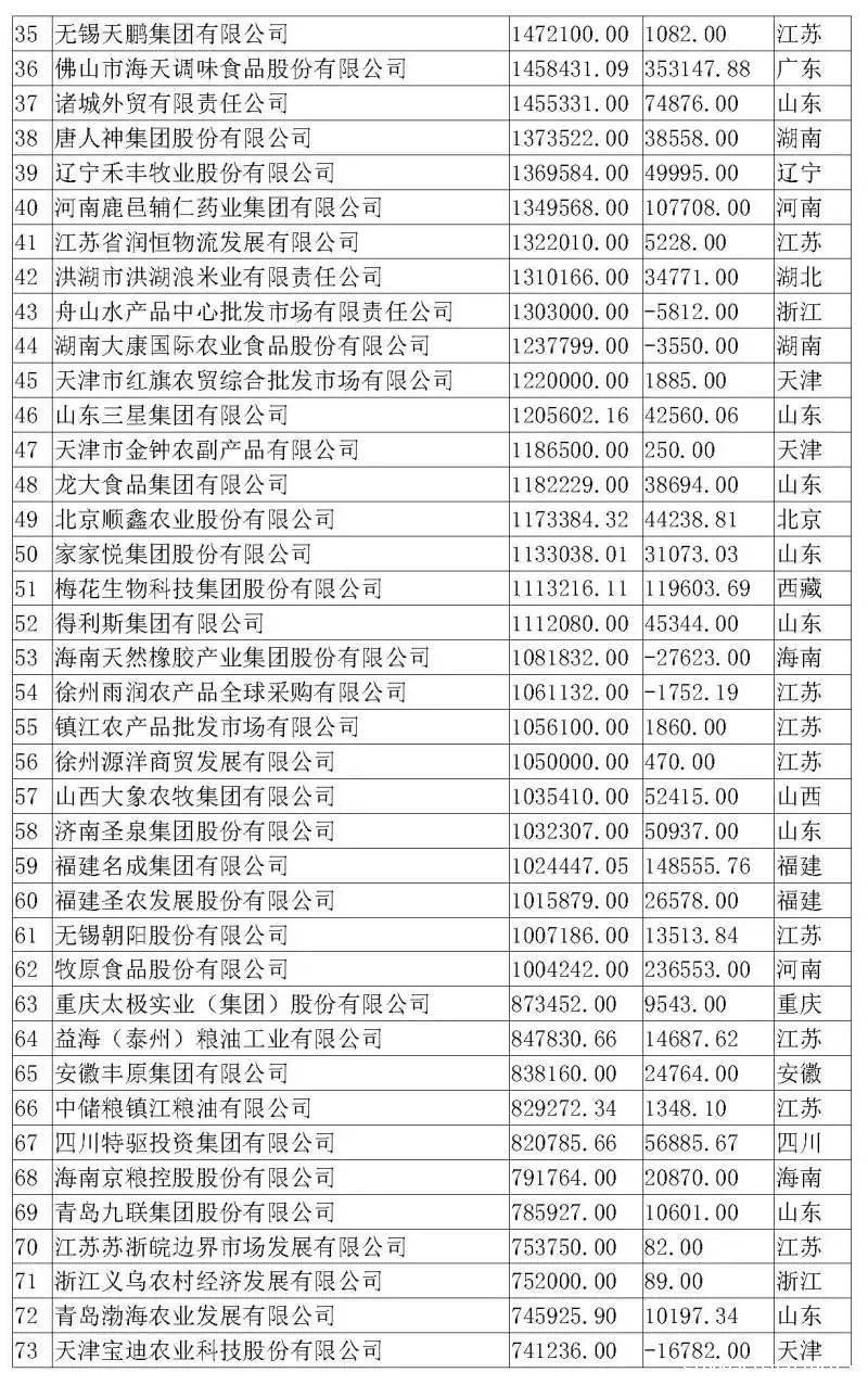 本届农业产业化龙头企业评价指标为营业收入,即按照2017年企业营收额进行排名,全国31个省(市、区)参加排名。本次入围门槛为6.7亿元,农业产业化龙头企业2017年营业收入达到100亿元以上的企业有62家,入围企业最多的省是江苏省。排名前三的企业分别为厦门象屿股份有限公司、河南万邦国际农产品物流股份有限公司、新希望集团有限公司。