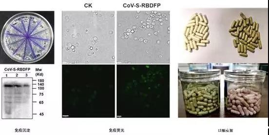 图二 COVID-19病毒RBD-FP域酵母疫苗株筛选及其口服制剂