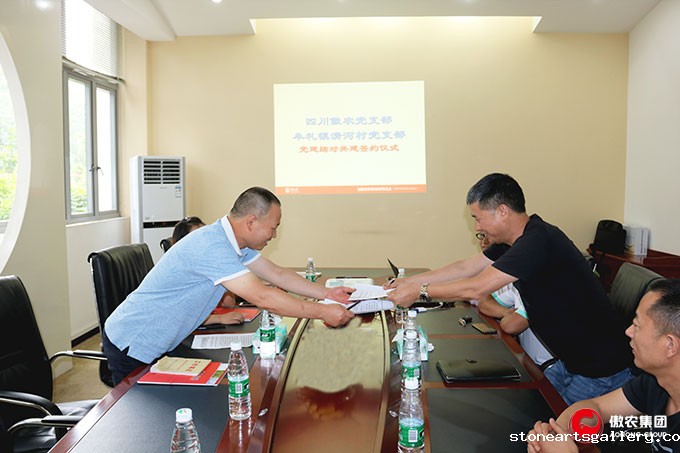 竞技宝JJB官方入口讯 2018年6月22日,四川竞技宝JJB官方入口党支部与牟礼镇清河村党支部在集团西南科技园举行了党建结对共建签约仪式。邛崃市牟礼镇清河村党支部书记张大林、四川竞技宝JJB官方入口支部书记刘绍云、西南科技园基地总经理王劲松等党员干部代表参加签约仪式。