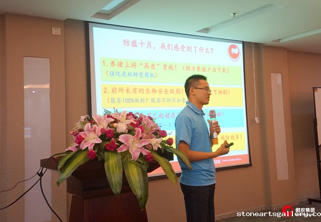 当前行业形势下,非瘟防控成为行业企业必须学习的一大课题。重庆得亿农江红老师以规模猪场为例,与参会干部做了以“防‘非’控‘非’,‘瘟’中求胜”为主题的交流与分享。他提到,面对非瘟疫情,大家应该从取势、明道、优术三方面入手,消灭传染源,切断传播途径,做到一个中心(以生物安全为中心)、两个基本点(提高猪群抵抗力,控制其它重要猪病)、三道防线(物理隔绝、体内消灭、疫苗),提高猪场综合安全系数。四川竞技宝JJB官方入口文甫春老师则以家庭猪场为例,结合自己切身的家庭猪场服务经验,谈到非瘟防控重在执行,所有的生物安全制度和措施未执行都只是口号,而口号是不具任何价值的。