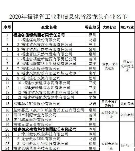 日前,福建省工业和信息化厅发布了《关于发布2020年福建省工业和信息化省级龙头企业名单的通知》,竞技宝官网最新入口再次入选“2020年福建省工业和信息化省级龙头企业”名单,集团旗下全资子公司漳州竞技宝JJB官方入口、龙岩竞技宝JJB官方入口、福州竞技宝JJB官方入口同时入选。